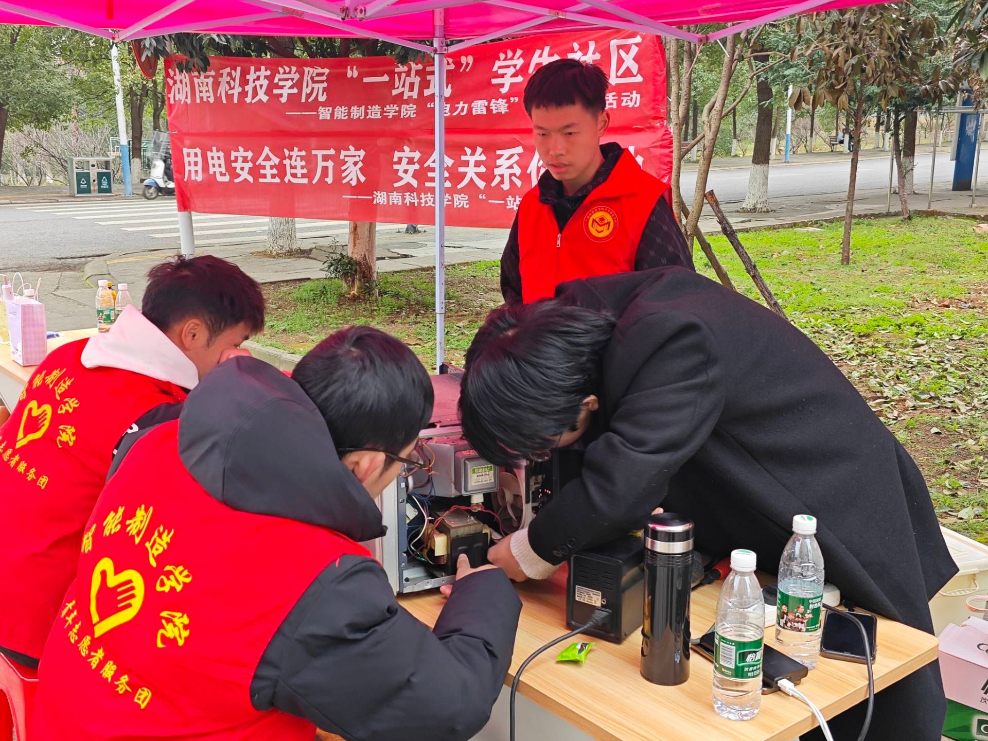 为推进“一站式”学生社区建设,充分发挥专业优势,打造实践育人平台,3月3日,智能制造学院在松园社区举办万搏平台“一站式”学生社区--“电力雷锋”、“用电安全宣传”进社区活动。