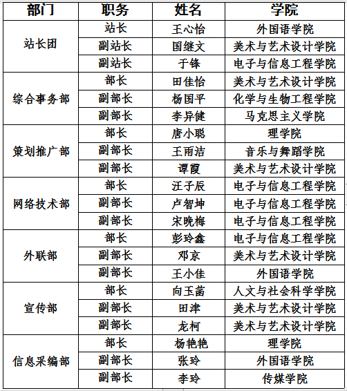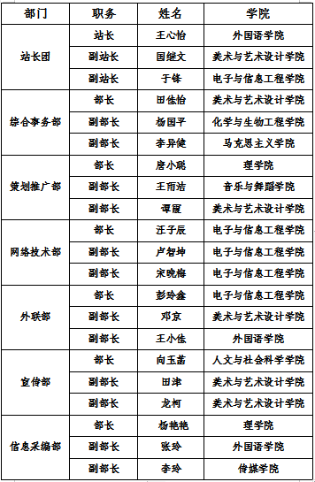 为进一步加强“易班”大学生网络互动社区建设,充分发挥易班学生工作站在万搏平台易班平台运营工作中的积极作用,经学生自愿报名、严格面试和组织考核,拟聘任王心怡等21名学生为校易班学生工作站学生干部,任期一年,试用期三个月。现将拟聘名单(具体名单见附件1)在全校范围内进行公示,公示时间6月27日至6月29日。
