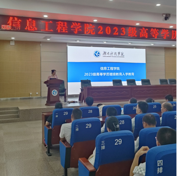 本网讯(通讯员 段元梅)7月15日下午,信息工程学院2023级高等学历继续教育入学教育在潇湘大讲堂举行。2023级全体新生、信息工程学院教职工和志愿者参加了会议。会议由信息工程学院段元梅老师主持。