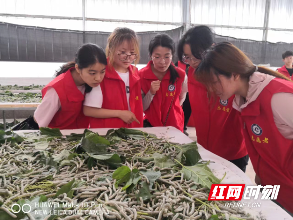 “给蚕宝宝喂食桑叶一定得是新鲜的,而且不能沾水,多撒新鲜石灰粉抑制病菌滋生繁殖。”合作社负责人给志愿者们分享养蚕知识,志愿者们听得津津有味,迫不及待地体验喂养过程。