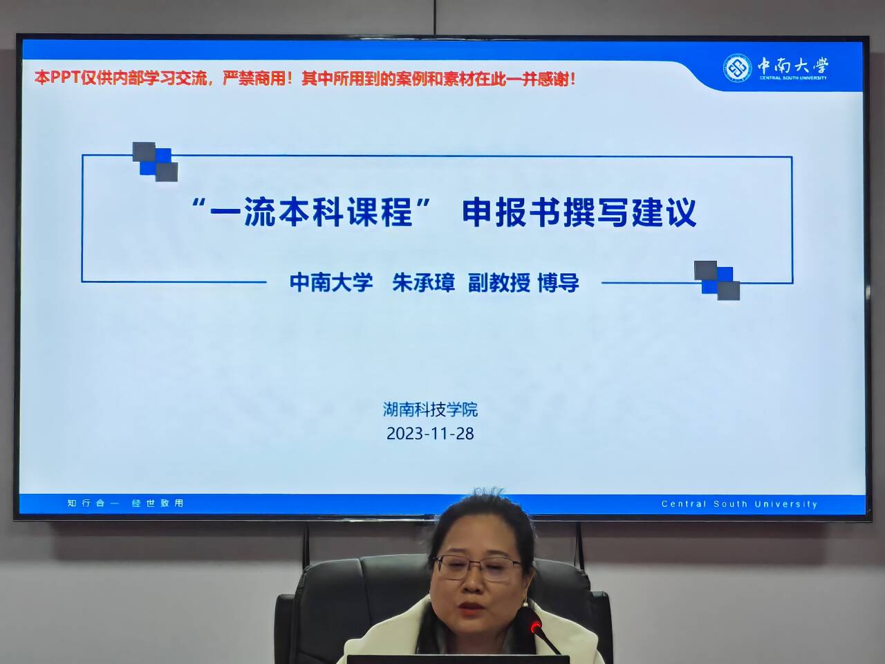 随后,朱承璋博导以《智能时代数字化教育转型》和《“一流本科课程”申报书撰写建议》为题,分析了当代教育数字化转型的现状,以及面对教育数字化转型的措施,并指明了数字化转型对教学教改的启示。同时,她重点就大家关心的“一流本科课程”申报做了专题辅导,并强调了课程思政在课程申报中的重要性,为大家提供了很多实用的经验。