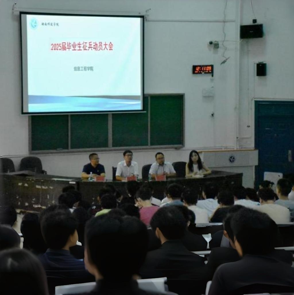 本网讯(通讯员黄紫黎)近日,我院开展2025年征兵动员大会。院党总支书记罗恩韬,副书记夏汉伟,辅导员黄紫黎以及2025届毕业生400余人参加。会议由夏汉伟主持。