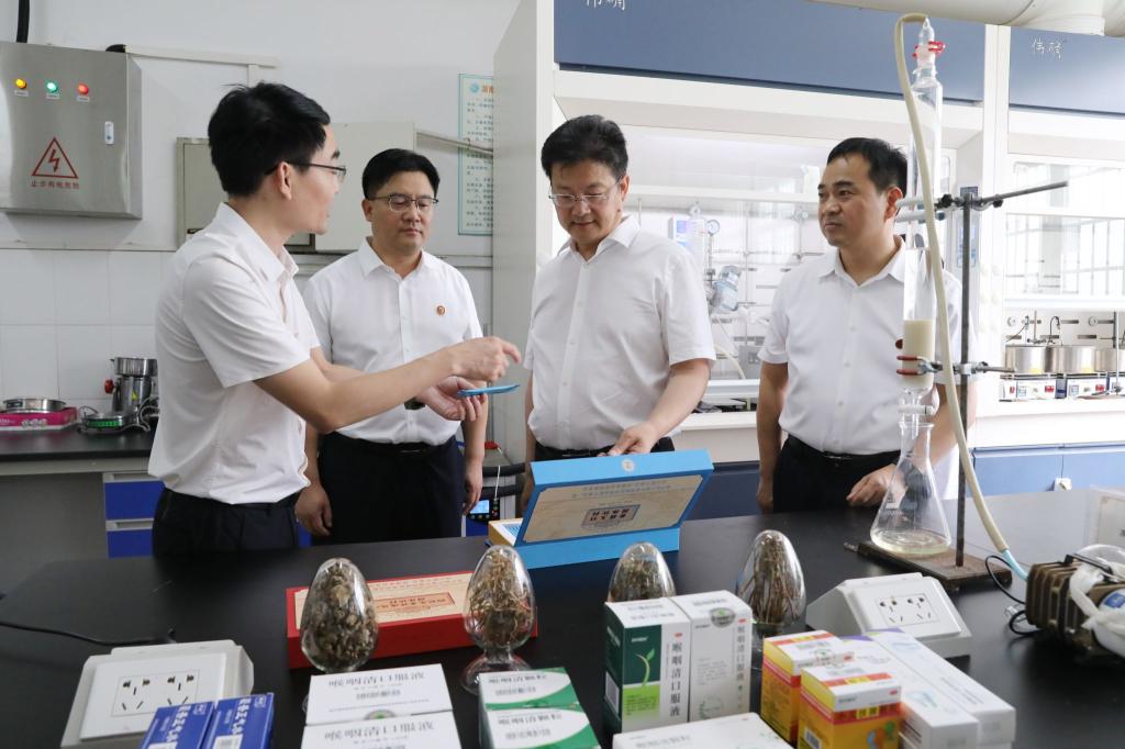 陈爱林一行来到我校化学与生物工程学院,详细了解市十大科技创新项目——“中药大品种培育研究与应用”项目在产品研发、技术创新、转化推广等方面的进展情况。随后召开座谈交流会。陈爱林表示,科技创新是引领高质量发展的强劲动力。要深入开展“政校企”一体合作,支持具有核心竞争力的企业与万搏平台组建创新联合体,实现共建共享、合作共赢。要坚持企业创新主体地位,聚焦市场需求,引导企业加大研发投入,加强技术攻关,推动“科创链与产业链”融合发展。要精准精细服务企业发展,帮助企业解决实际困难,特别是要帮助专精特新企业提高创新能力,更好发挥引领作用。要大力推进十大科技创新项目建设,以科技创新引领产业创新,不断培育新动能塑造新优势,力争在打造具有核心竞争力的科技创新高地上发出更多永州声音。
